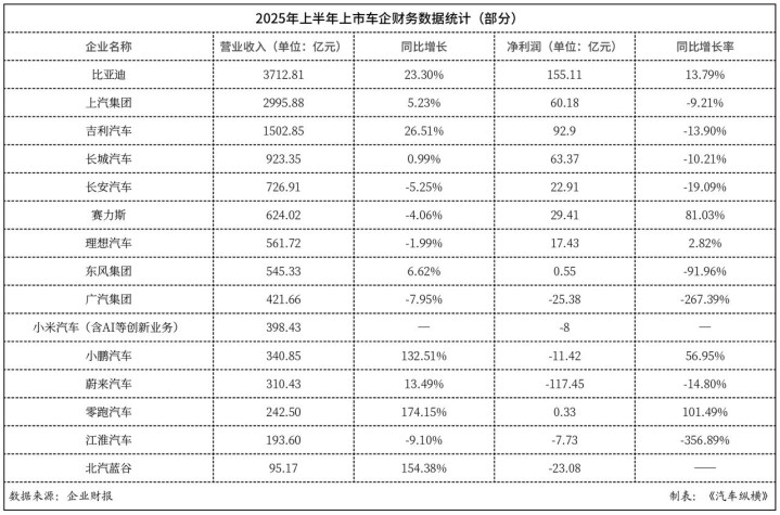 根据中国汽车工业协会(以下简称中汽协)发布的数据,今年上半年国内汽车产销分别完成1562.1万辆和1565.3万辆,同比分别增长12.5%和11.4%,均创下历史新高。然而,市场的一片繁荣之下却仍有隐忧。通过梳理近期主流车企发布的财报数据可以发现,尽管上半年各家车企的营收大部分保持了同比增长的态势,但有过半车企出现了利润比去年同期降低的情况,有的是“增收不增利”,有的则是营收利润双下滑。业内人士分析称,中国车企的体量正在逼近跨国车企,但盈利水平差距依然较大,特别是对于行业龙头企业而言,如何进一步提升利润空间、寻求价值突围,才是今后较长一段时间内的重要课题。